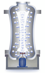 Der Levitationsvorgang dauert 4 Minuten und 20 Sekunden. Während dessen ist das Wasser so stark in Bewegung, dass die Fliehkräfte den gesamten Inhalt (ca. 35 Liter) nahezu komplett in der Schwebe (= Levitation) halten. Dieser Schwebezustand hat dem Levitierten Wasser seinen Namen gegeben. Nur die originalen, 35 l großen – Levitationsanlagen können diesen Zustand herbeiführen. Das Wasser ist nach 4 Minuten und 20 Sekunden so in der Schwebe, dass man den Auslaufhahn öffnen kann und kaum ein Tropfen Wasser herausläuft. Nicht jedes verwirbelte Wasser ist also gleich levitiert, auch wenn das gerne behauptet wird! Verwirbeln können Sie Wasser bereits mit einem Kochlöffel – levitieren können nur wir.